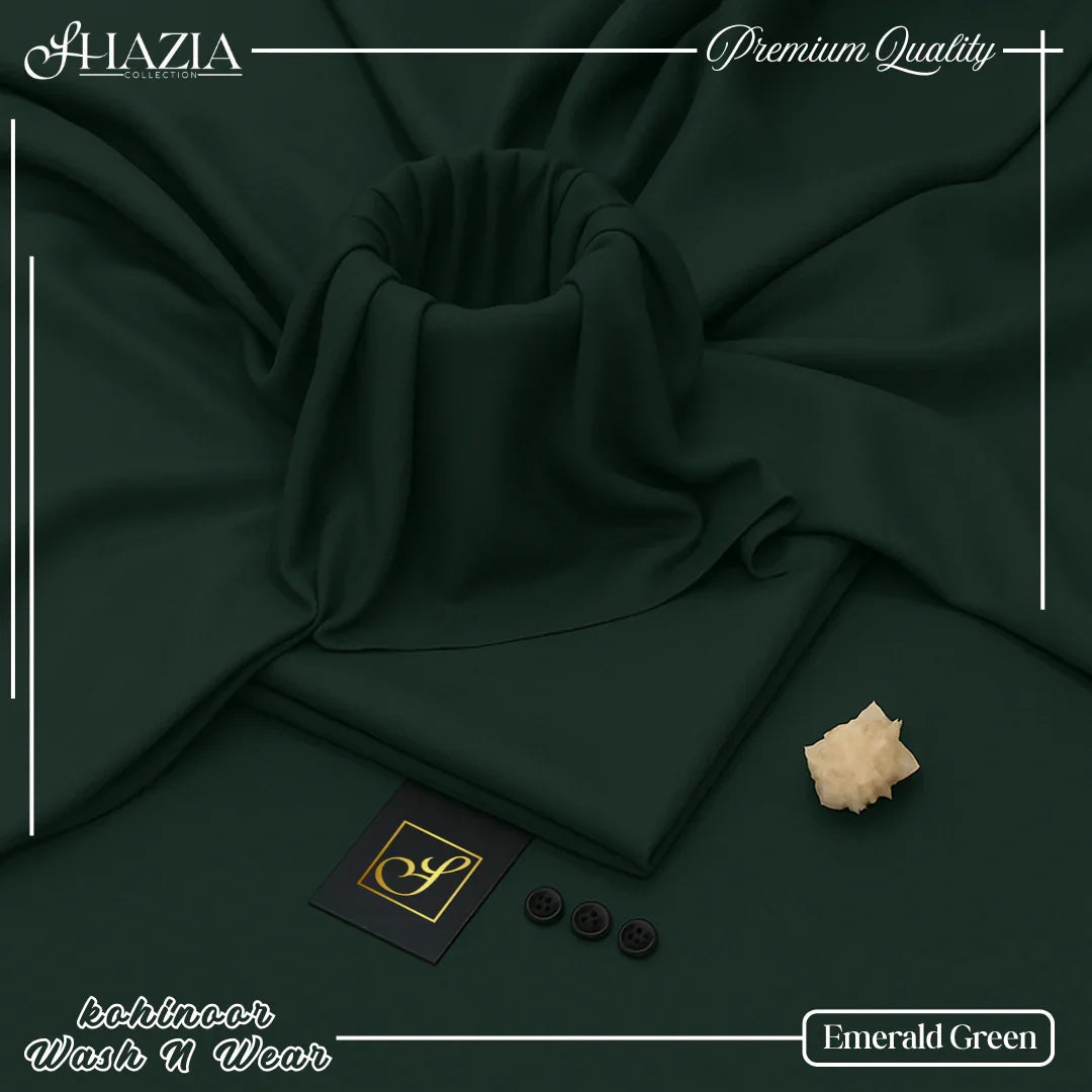 Elevate your wardrobe with the sophistication of our Emerald Green Kohinoor Wash N Wear, a shade that blends tradition with refined elegance. This unstitched 4-meter cut with a wide 58-inch width provides ample material for creating a perfectly tailored shalwar kameez. The deep green hue reflects strength, confidence, and class, making it an ideal choice for formal occasions, cultural events, or stylish everyday wear. Its richness ensures you stand out effortlessly while maintaining a timeless appeal. A must-have color for gentlemen who prefer bold elegance in their attire.